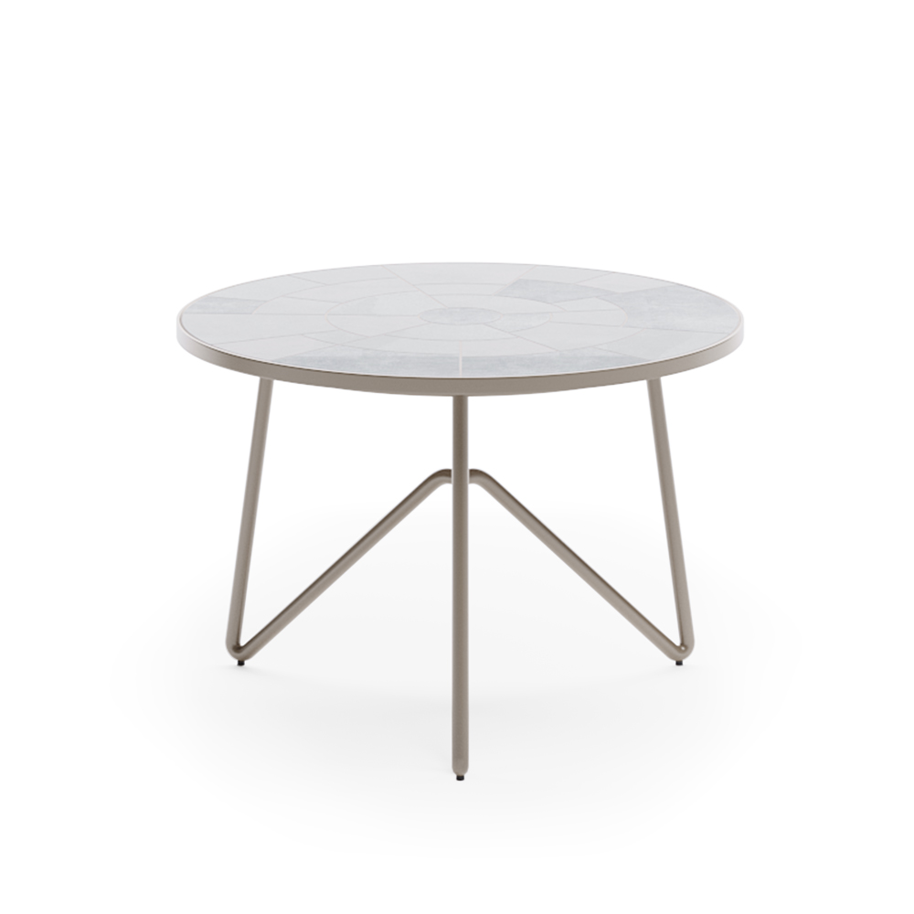 Стол чайный Леба Ø70 отлично дополнит мягкие кресла из коллекции уличной мебели.