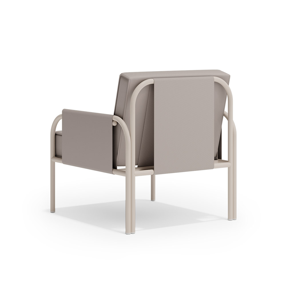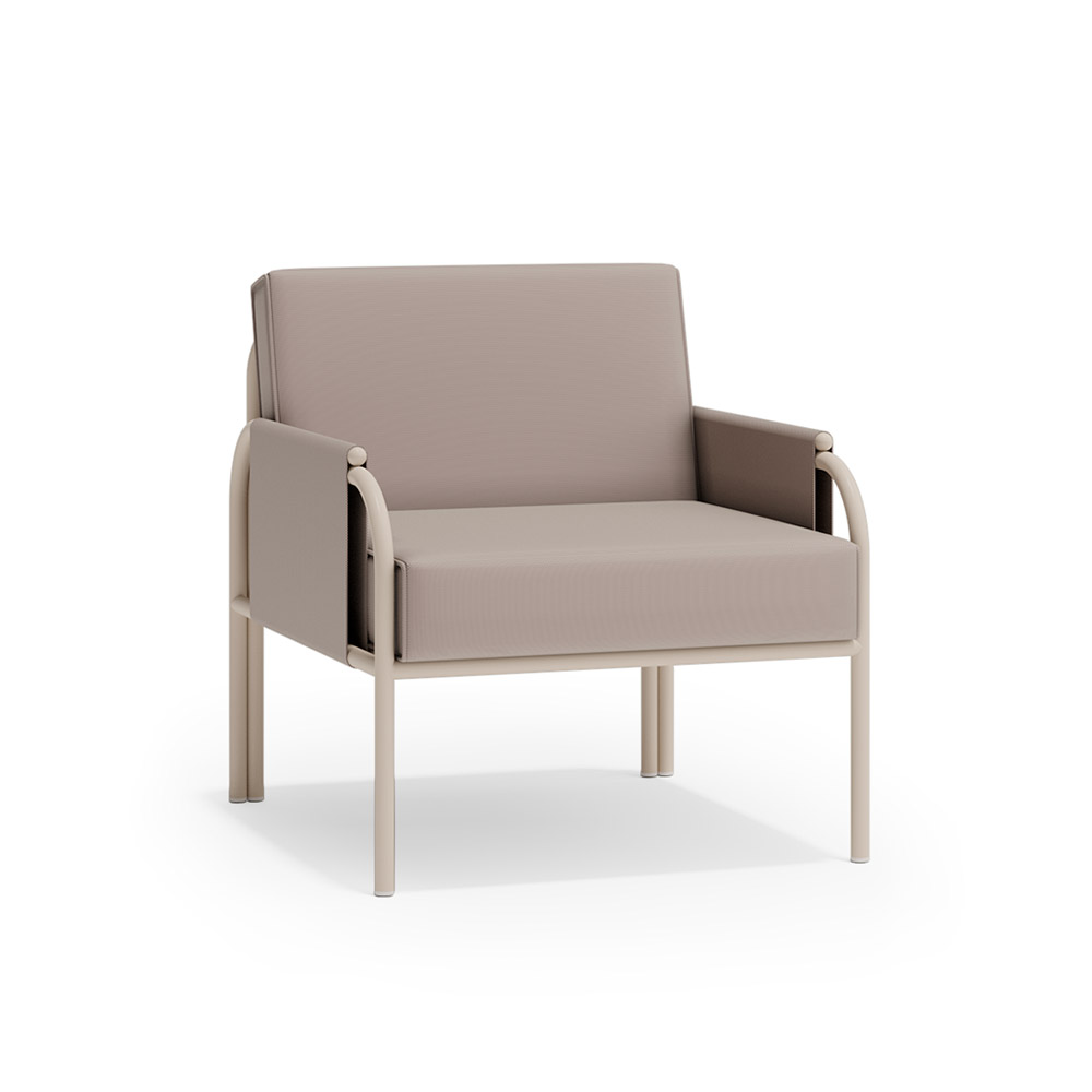 Особое внимание уделено повышенным требованиям эксплуатации – алюминиевый каркас, покрытый порошковой краской, атмосферостойкий текстиль для обивки, съемные подлокотники и подушки – все это увеличивает срок службы изделия.