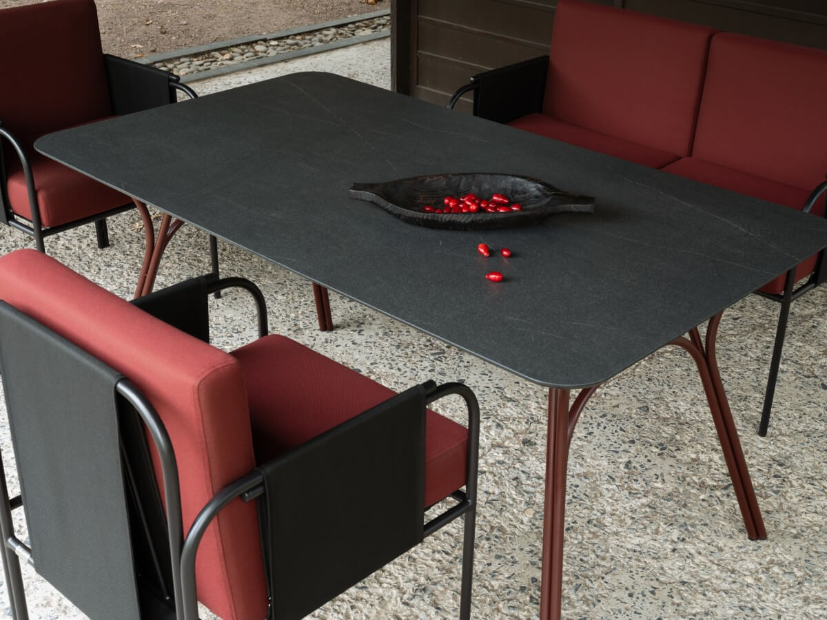 Каркас из алюминия с порошковым покрытием устойчив к погодным условиям, текстильные элементы из акриловых тканей сохраняют цвет и форму на протяжении сезонов.