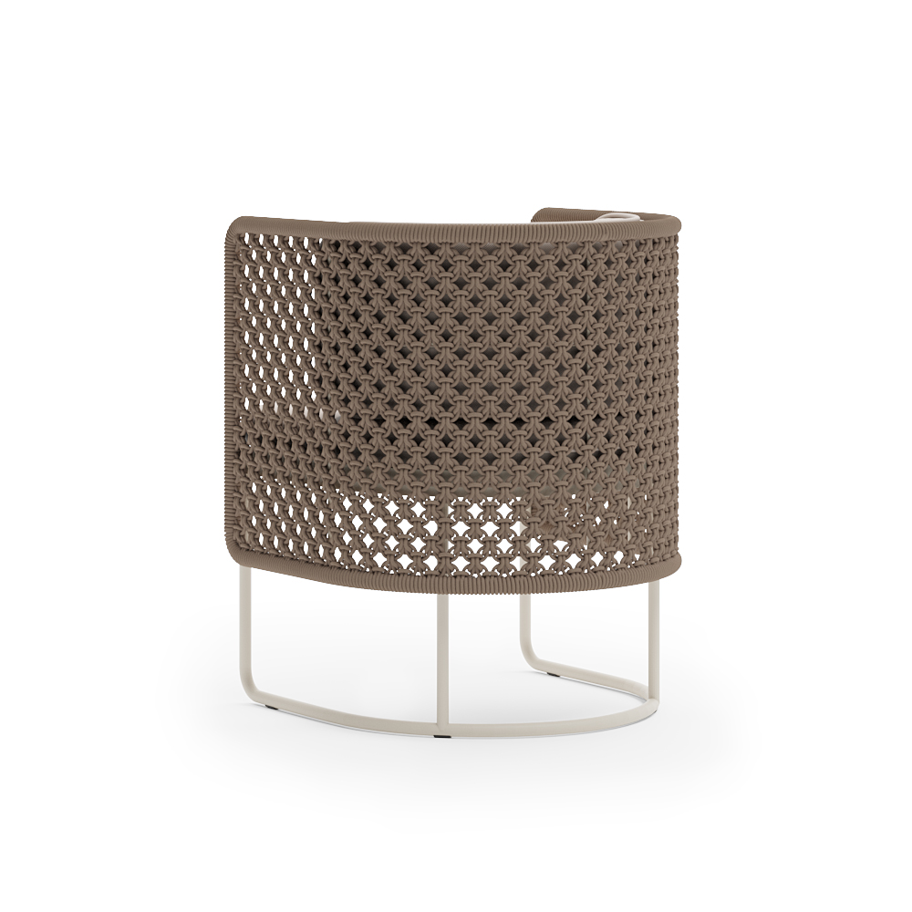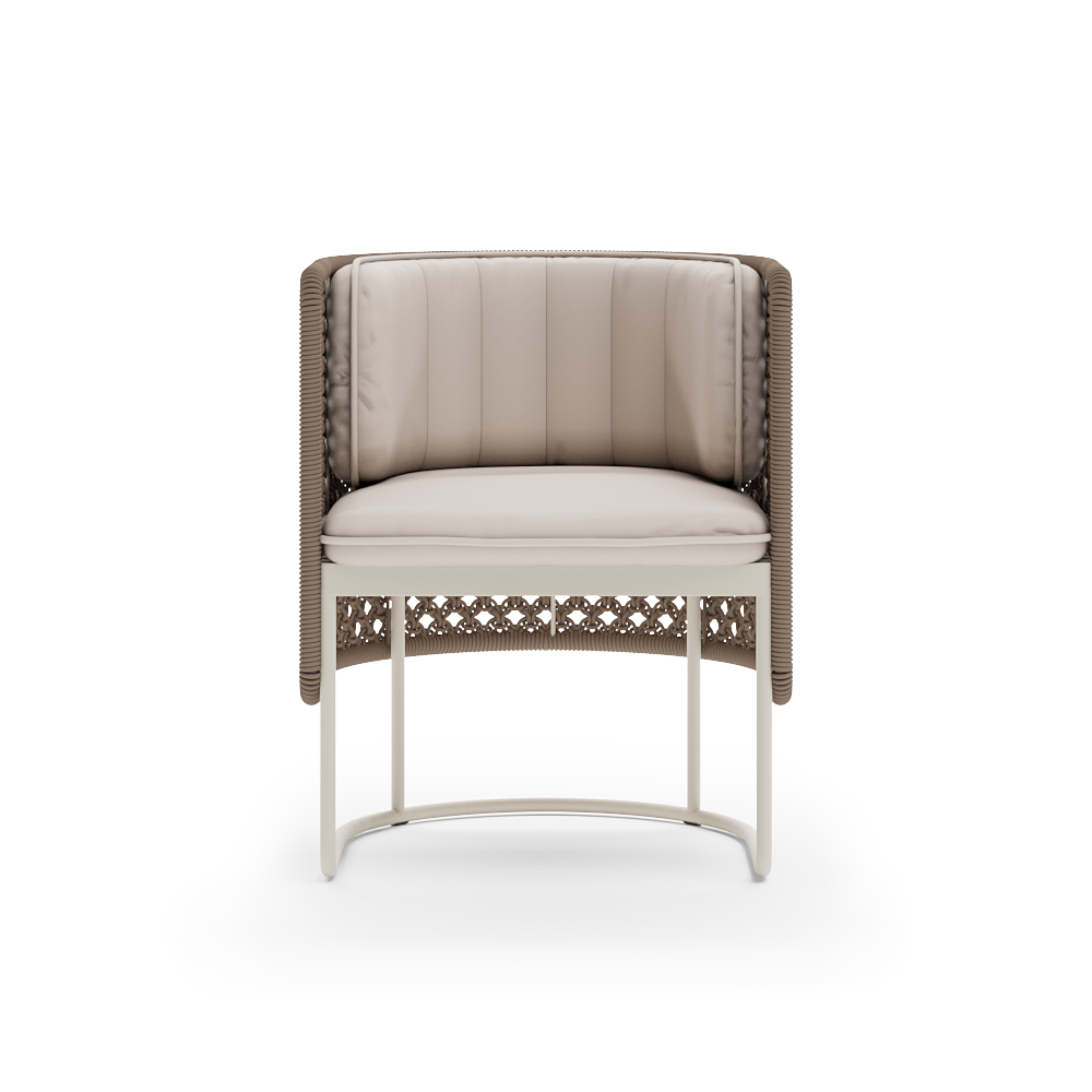 При создании кресла Рюген используется алюминиевый сплав как основа для каркасов, ручное плетение AuricaRope, грязе- и водоотталкивающие ткани.